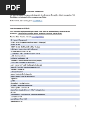 Atlantic Immigration Pilot Project Designated Employers List Pdf New Brunswick Restaurant And Catering